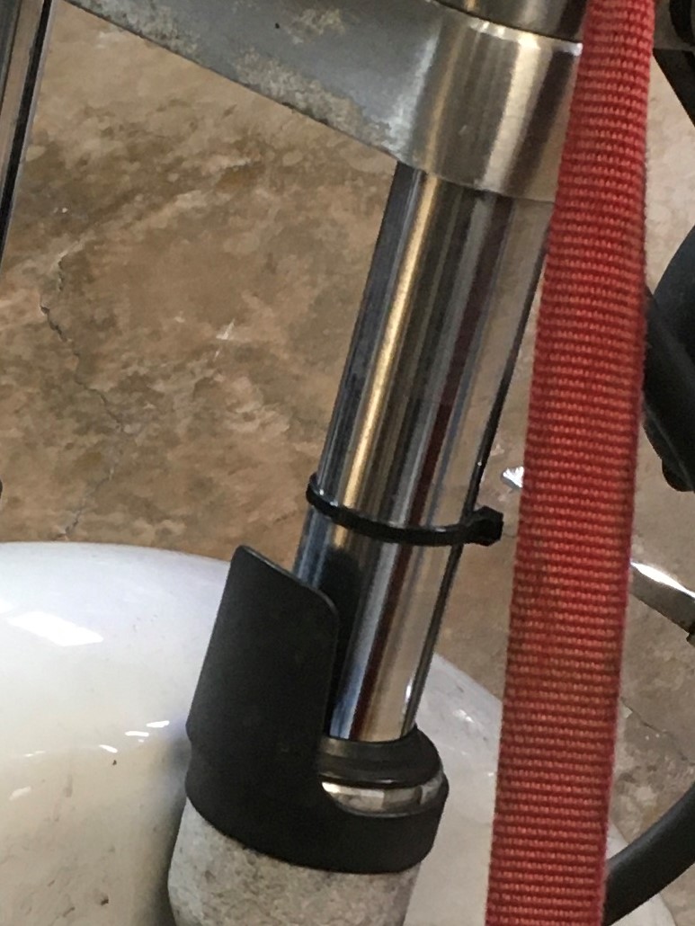 Now I’m gonna try Gary’s setup procedure on the front forks.  I’ve been riding it around with a zip tie on the fork tube so I can get a feel for how much the forks travel.  They’ve been using up about 4.83”.  That’s 97% of the available travel (5.00”).  I’m gonna try and set the preload so that I can achieve the correct race sag (1.5”) and see what I get for static sag.