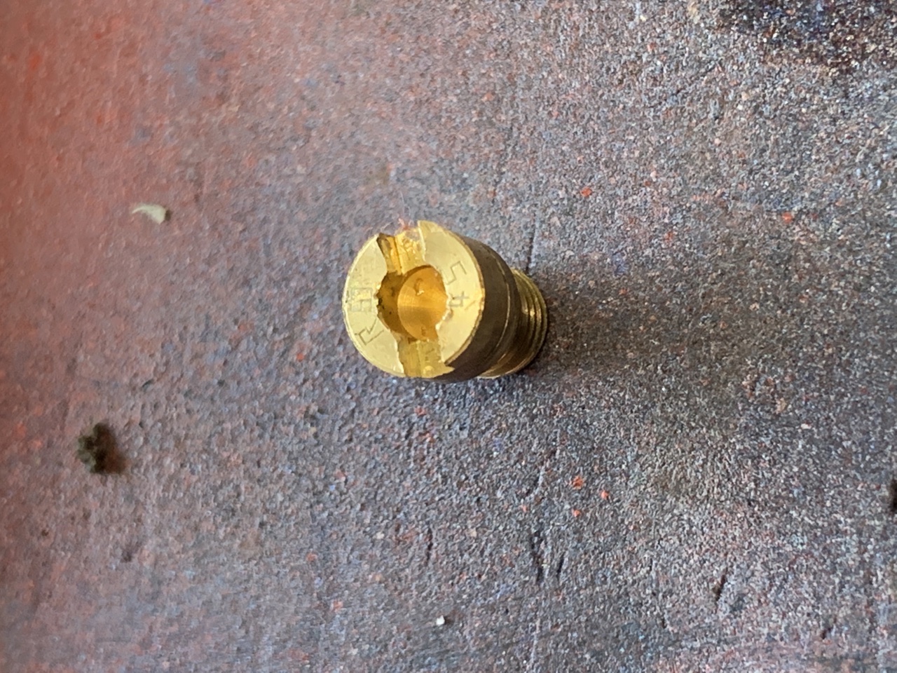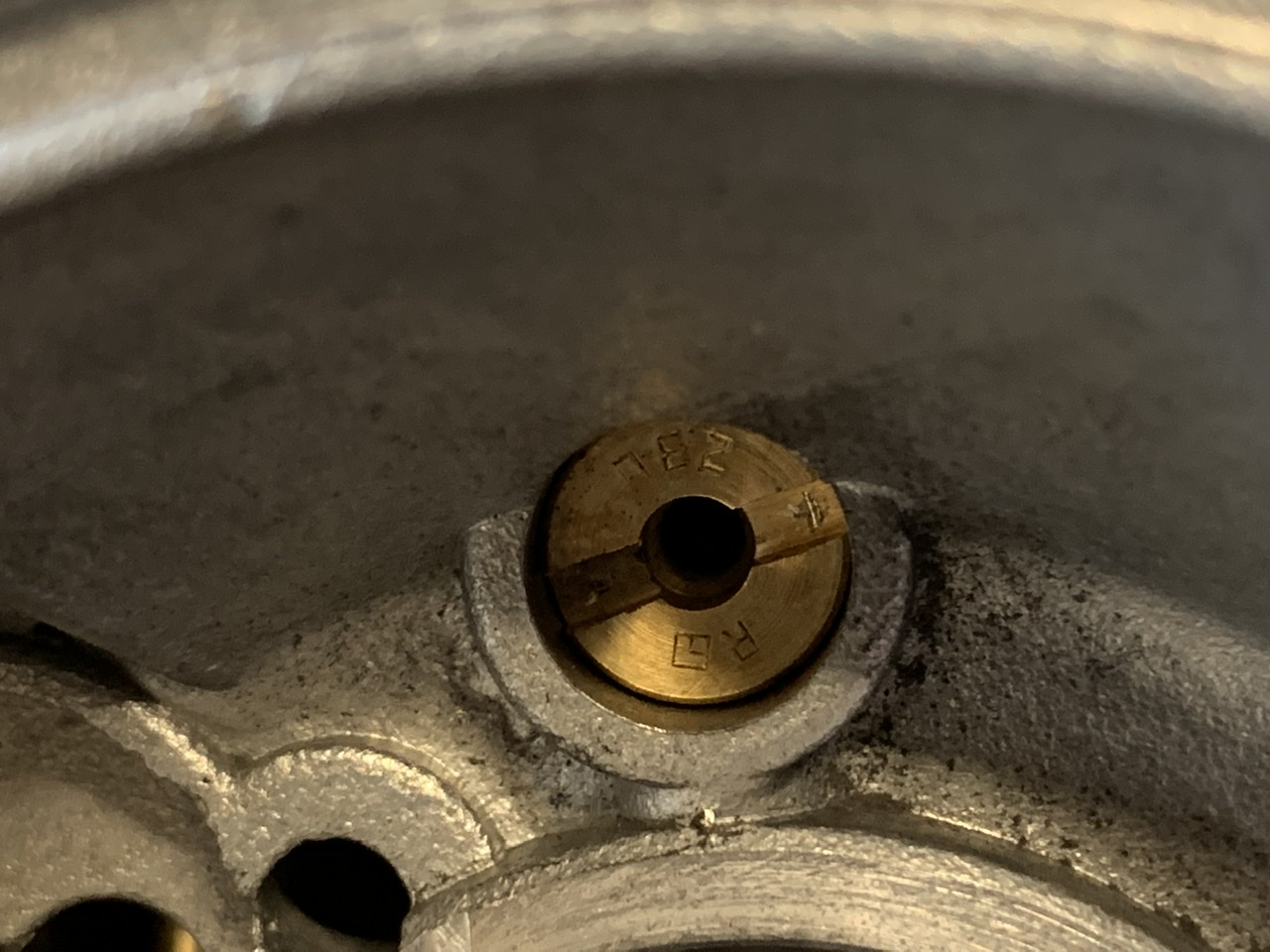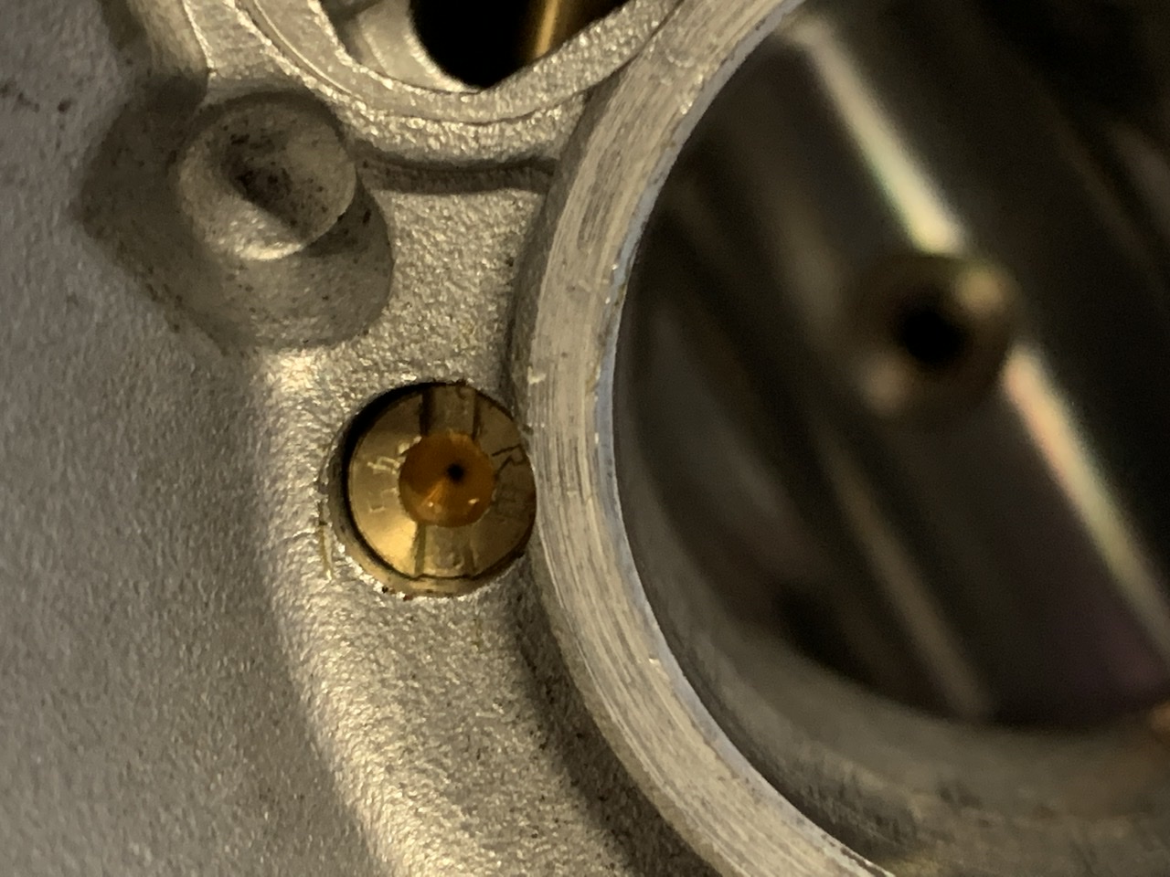 The one that’s on my table by itself is the main. The other one is inserted in the carburetor the hole is significantly smaller. When you say large headed are you referring to the hex Version? I mean she’s running great, it’s amazing what happens when you ditch the in-line fuel filter and perform a carburetor clean out. But I’m like you, the main says 45 on it, but the little air version must say 4.5… but my old ass I can’t see. (43) LOL. But the slide looks a little worn, because aren’t they black stock? Because you could tell where it’s been rubbing inside the carburetor the black color is worn off down to silver. I gently took a 0000 Wool pad to it it’s sliding better than it was when I started to clean out.