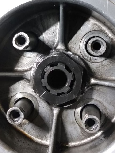 Ooooooops! Forgot on thing. Make sure that someone hasn't installed a steel plate out against the Hub. The special outer fiber plate (pc 9) runs against the aluminum flange on the hub. Inserting a steel plate between the hub and the outer fiber will eat up all the travel. You don't want this.