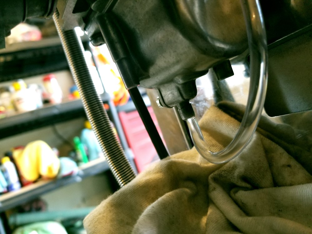 - One day when I came home for lunch, I was sitting on the bike in the driveway thinking about the idle (while the bike was idling), and it started to rev up by itself.  It sounded like whatever was wrong was momentarily fixed.  Since I had the knurled knob so high, the RPMs started to rev up quite a bit.  Whatever was broken, appeared to be momentarily fixed.  When I started it up after lunch, the rough idle was back.