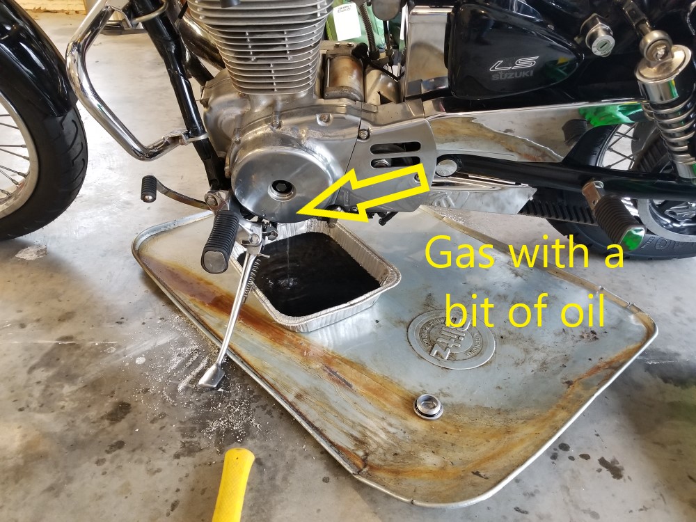 If you didn’t notice if the petcock is leaking, test it.  Disconnect the fuel line and look to see if fuel comes out when the petcock is turned off.  Watch it for a few minutes.  Make sure you don’t have a slow leak.  When it comes to filling up the crankcase, a slow leak is just as bad as a fast leak.