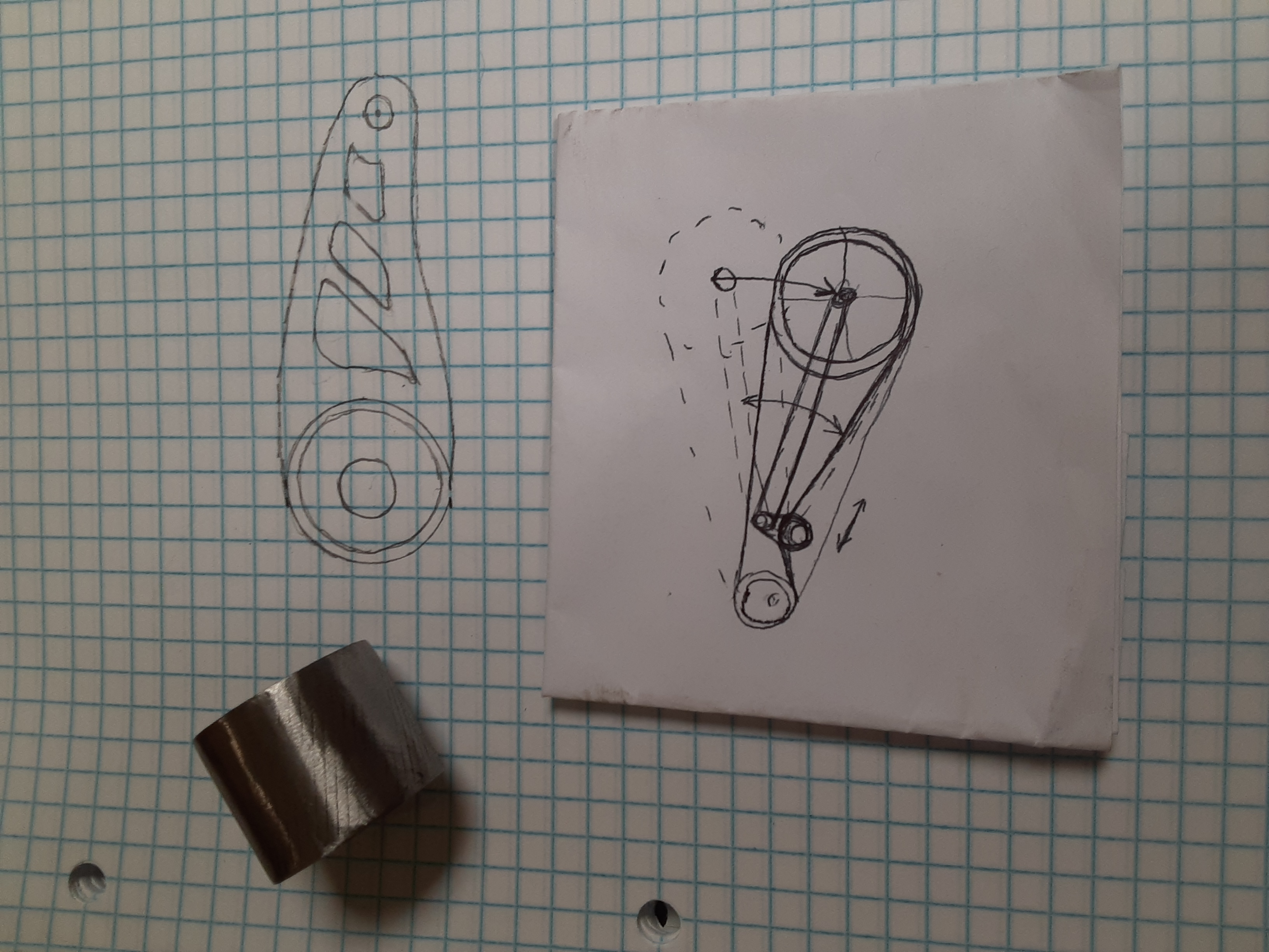 As one of you mentioned the belt tension on 15 inch shocks is excessive. I thought of a possible solution and would like some thoughts on it. If the belt were raised under the swing-arm to match the top angle so it is equidistant at 90 degrees from the swing-arm pivot point would the tension problem be removed? It makes sense and the mock up seemed to work but I'm still not sure if I'm missing something.