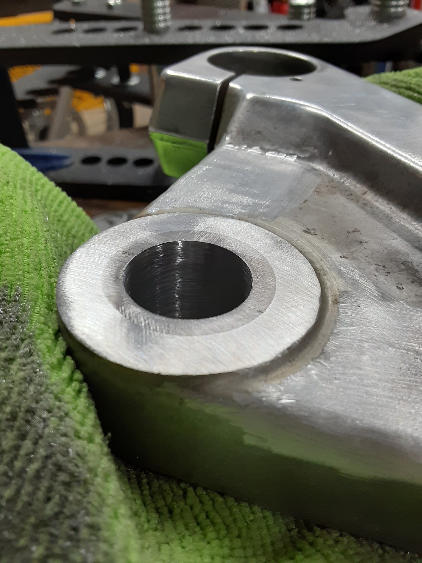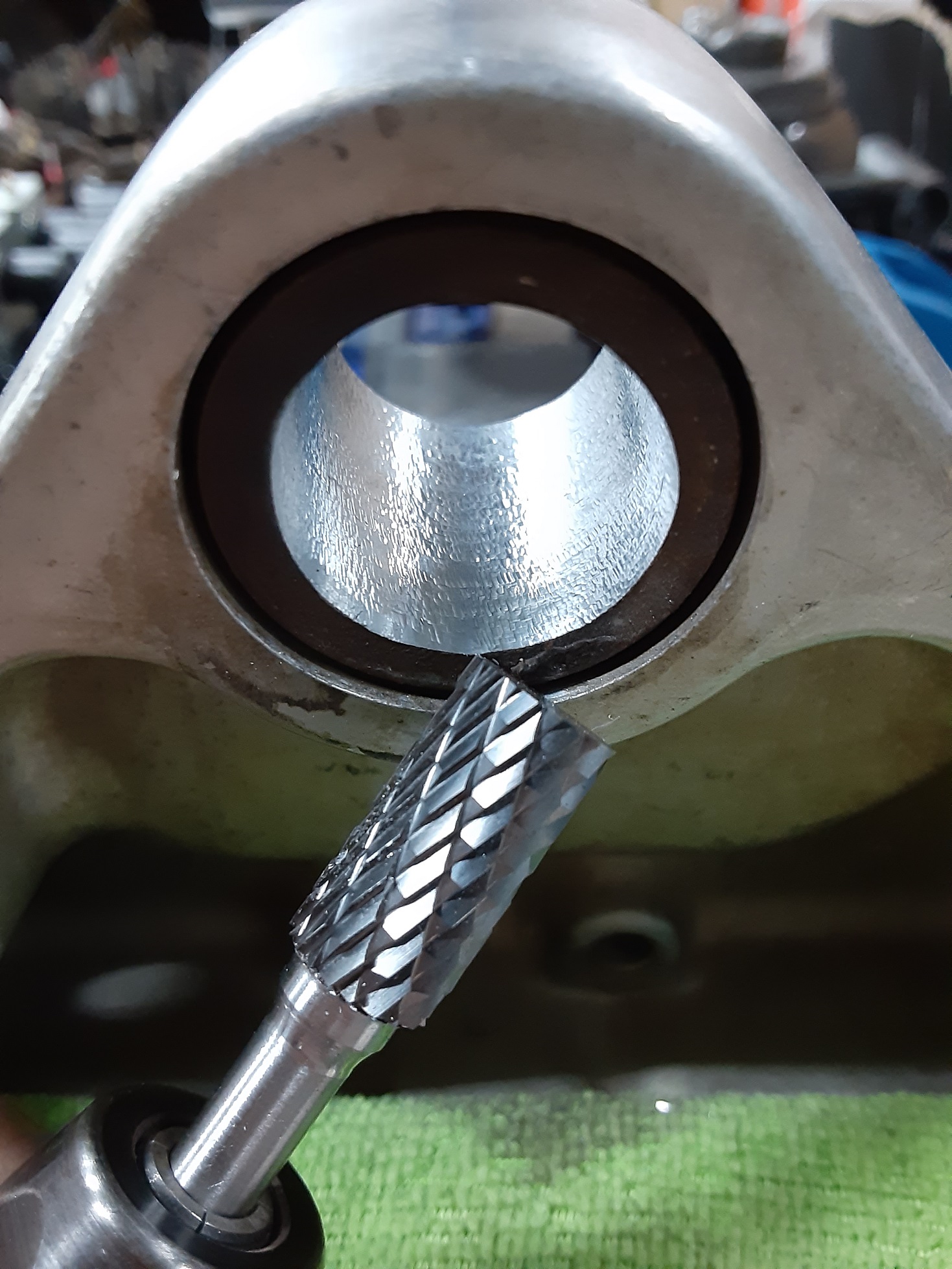 And the quick grind for the lower triple clamp conversion. The steering tube hole looks off center but that is just the picture angle