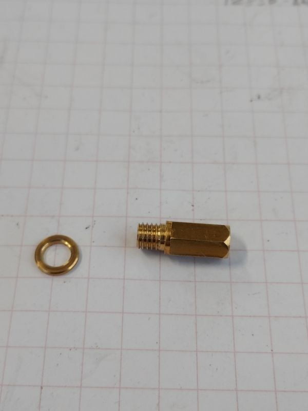 When I removed my main jet there was only a washer between the jet and the carb body.  Also, my jet does not stick out as far as yours.  It is recessed into the bowl when you remove the plug.