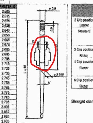 This is an illustration (cross section) of a normal PWK needle and needle jet.  Make sure you install that suspect needle jet (the piece that fell out) as shown in the illustration.  The side with the larger opening goes "up".