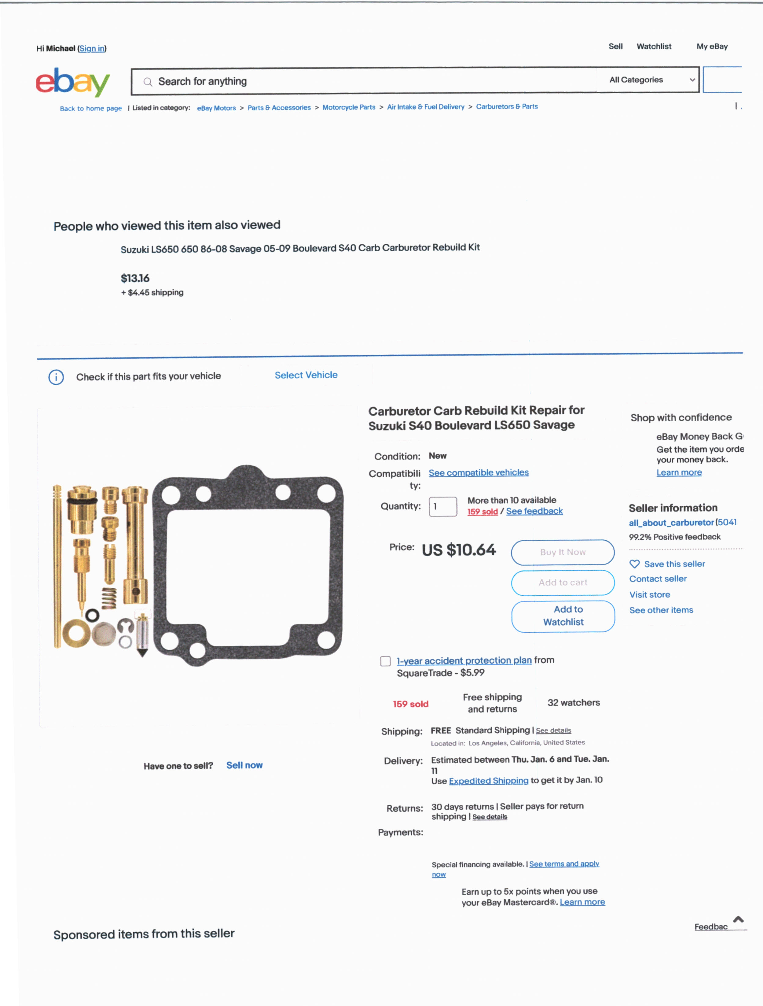 I ordered the kit from eBay (seller “All_About_Carburetor”).  It arrived in my mailbox about seven days later.  So far so good.