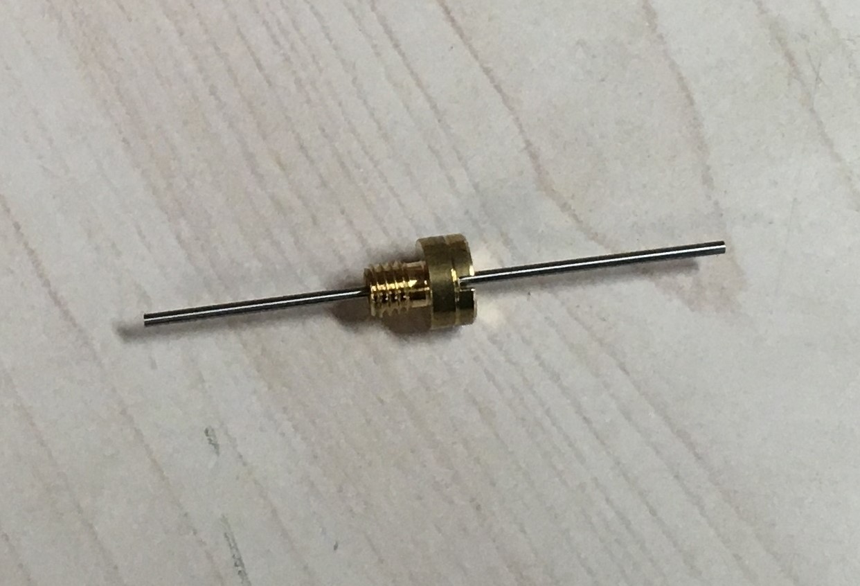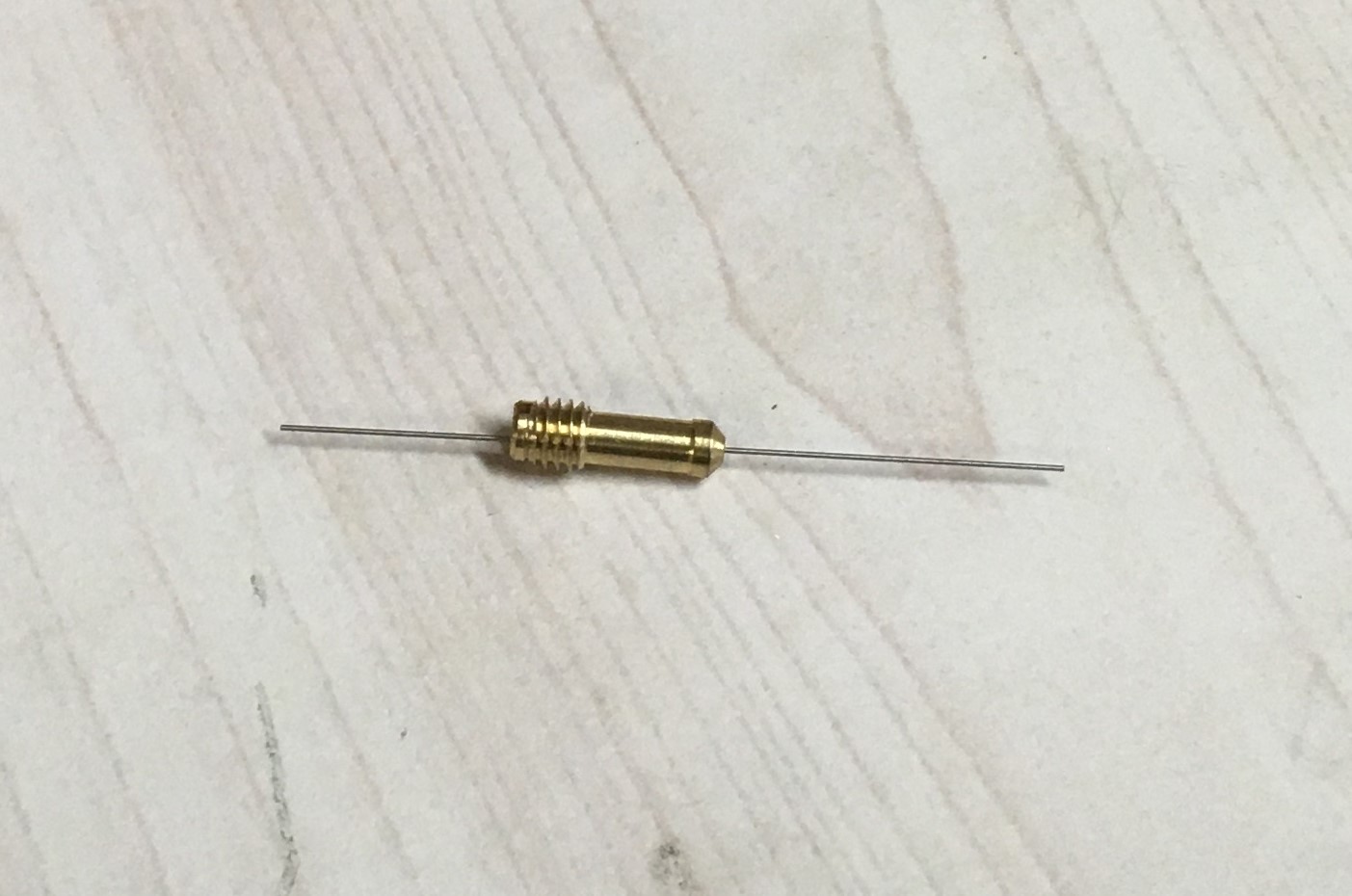 Oh my!  The new pilot jet is only .015”.  That’s equivalent to a #37.5 Mikuni pilot jet (at least 4-sizes too small).  That’s gonna be tough to dial in.  Note that the .015”pin-gage is skewed, the only sloppy workmanship I found on all the parts in the kit.  The jet looks just fine at first glance, but inspection indicates it’s not suitable for this application.