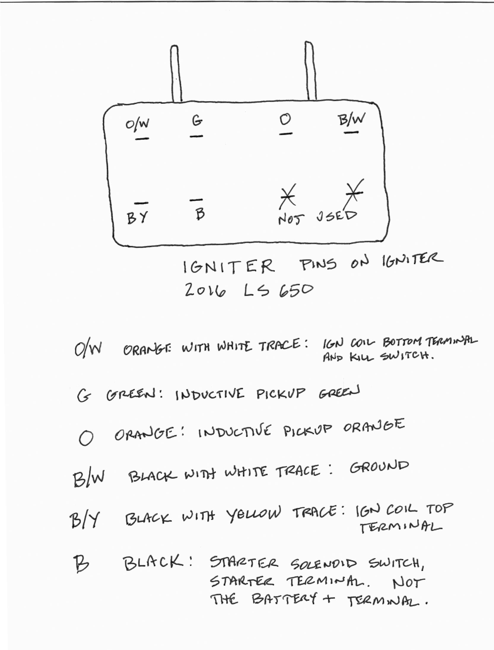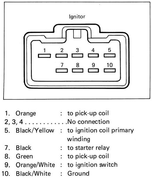 The Clymer's manual I have has nothing of the sort. It has poorly illustrated wiring diagrams but not the pin out. I have no idea what wires I am dealing with here as I mentioned in my post. The same with the diagrams available on this site. There is no pin-out.