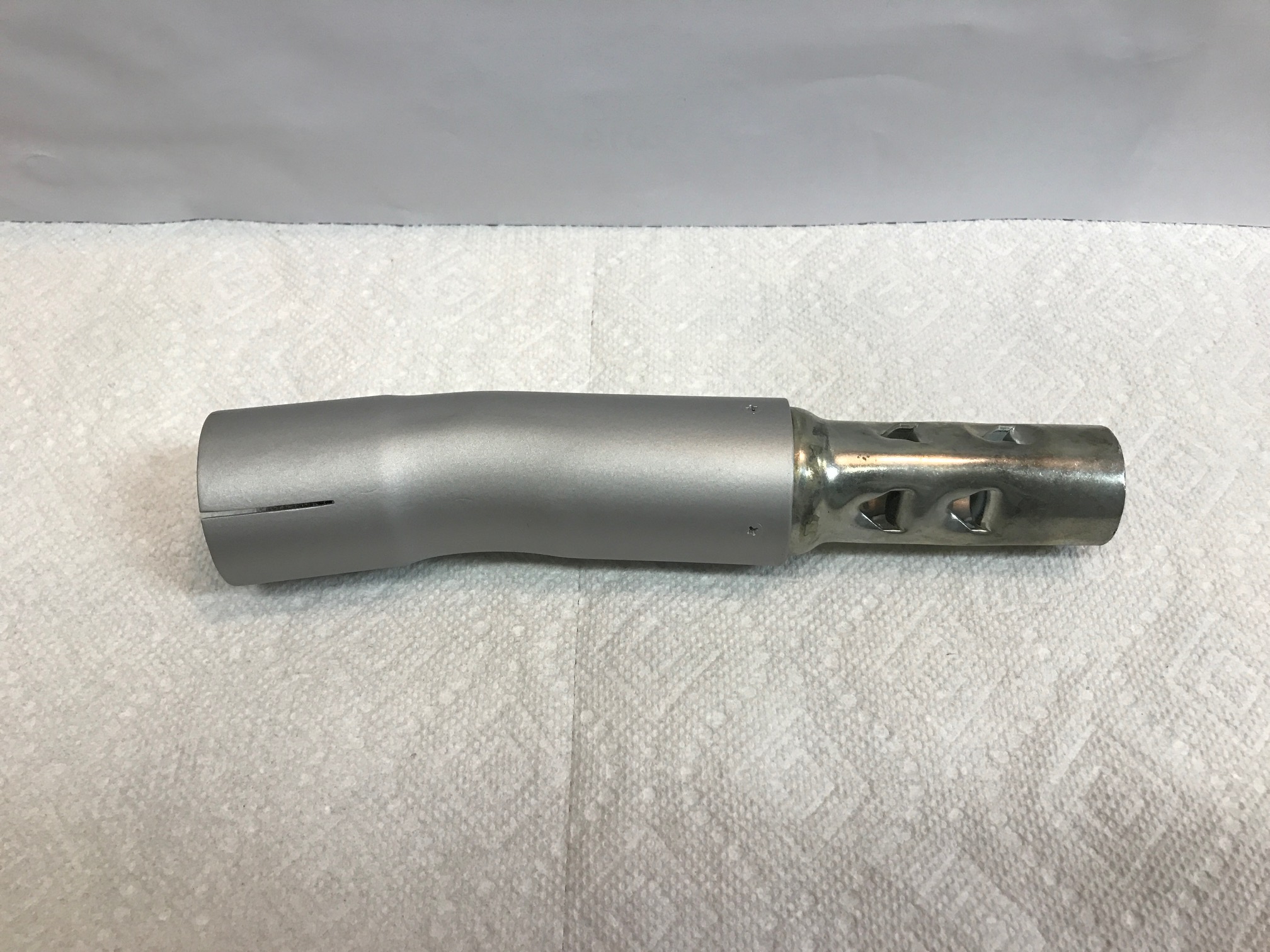All that said, I will point out that by converting it to a down turn you effect and redirect the sound output. Sound is actually a wave and travels as such. Mounted as a turn out you are directly sending that wave out to the side, broadcasting it into open air with nothing in it's way. Once you turn it down you are directing it at the ground where it contacts and disperses the wave, effectively making it a little quieter.