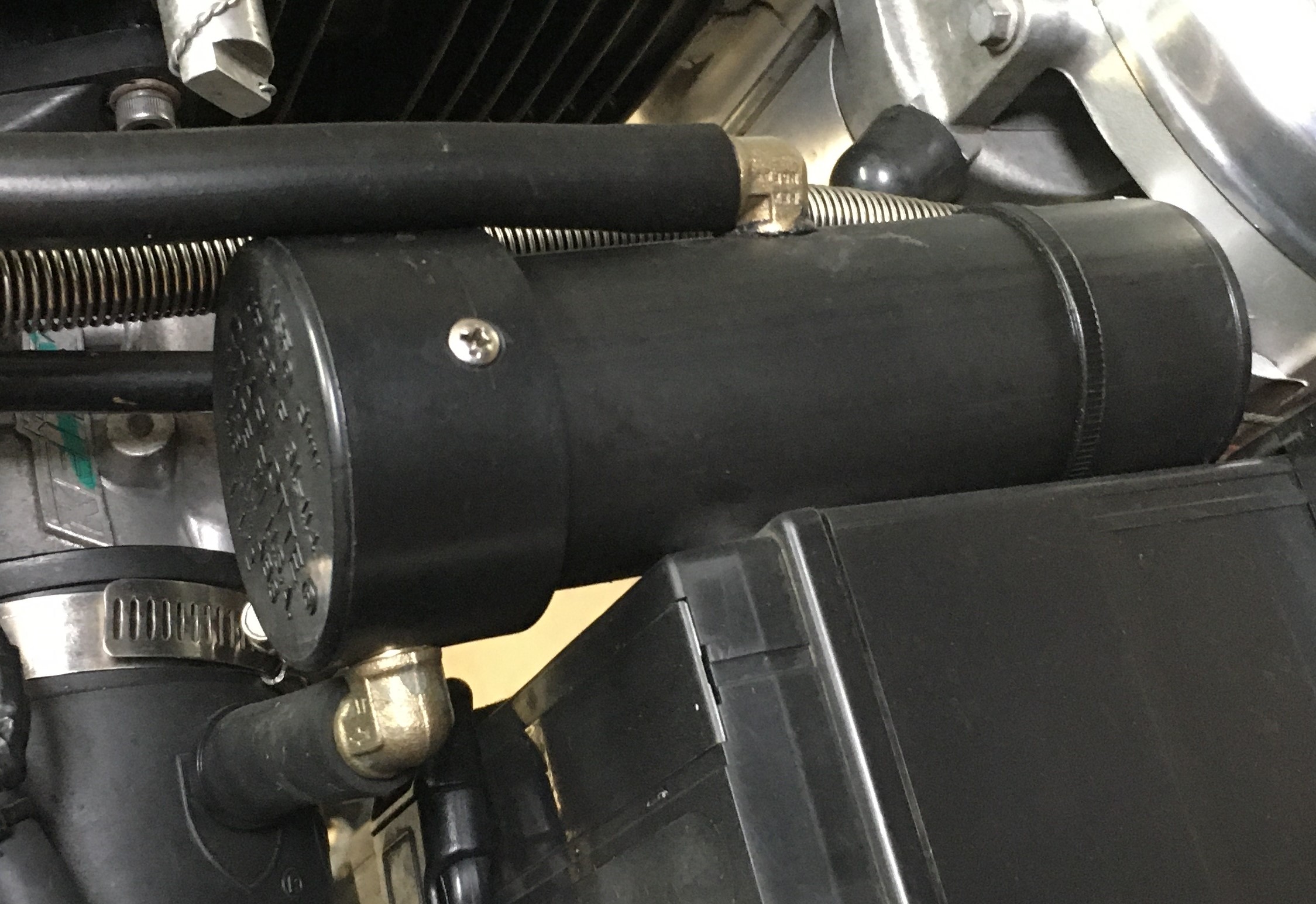 This is the breather system I have been running.  It has served me well.  Crankcase vapors enter the lower section of the catch can.  There is a wad of stainless-steel scrubbing pad between the lower part of the catch can and the breather filter on top.  Any oil droplets entrained in the air get caught by the scrubbing pad, the air continues up and out the breather filter.  There’s a threaded plug in the bottom to permit periodic draining.