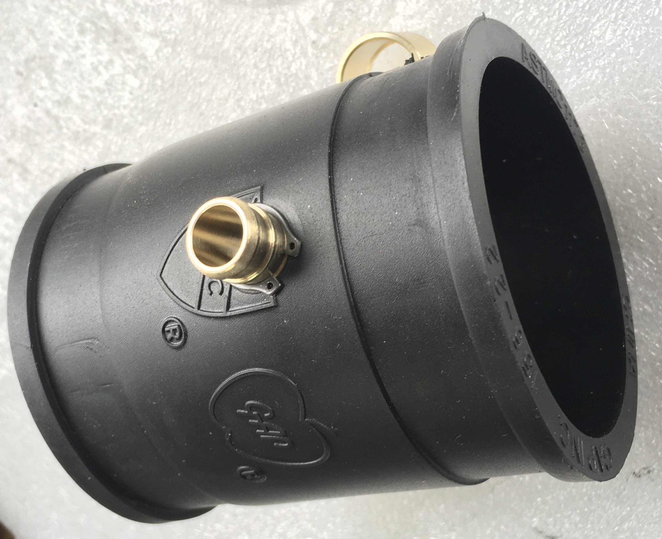 To facilitate the connection to the air boot, a simple PEX fitting does the trick.  I captured it with a snap ring.  Very easy to do.