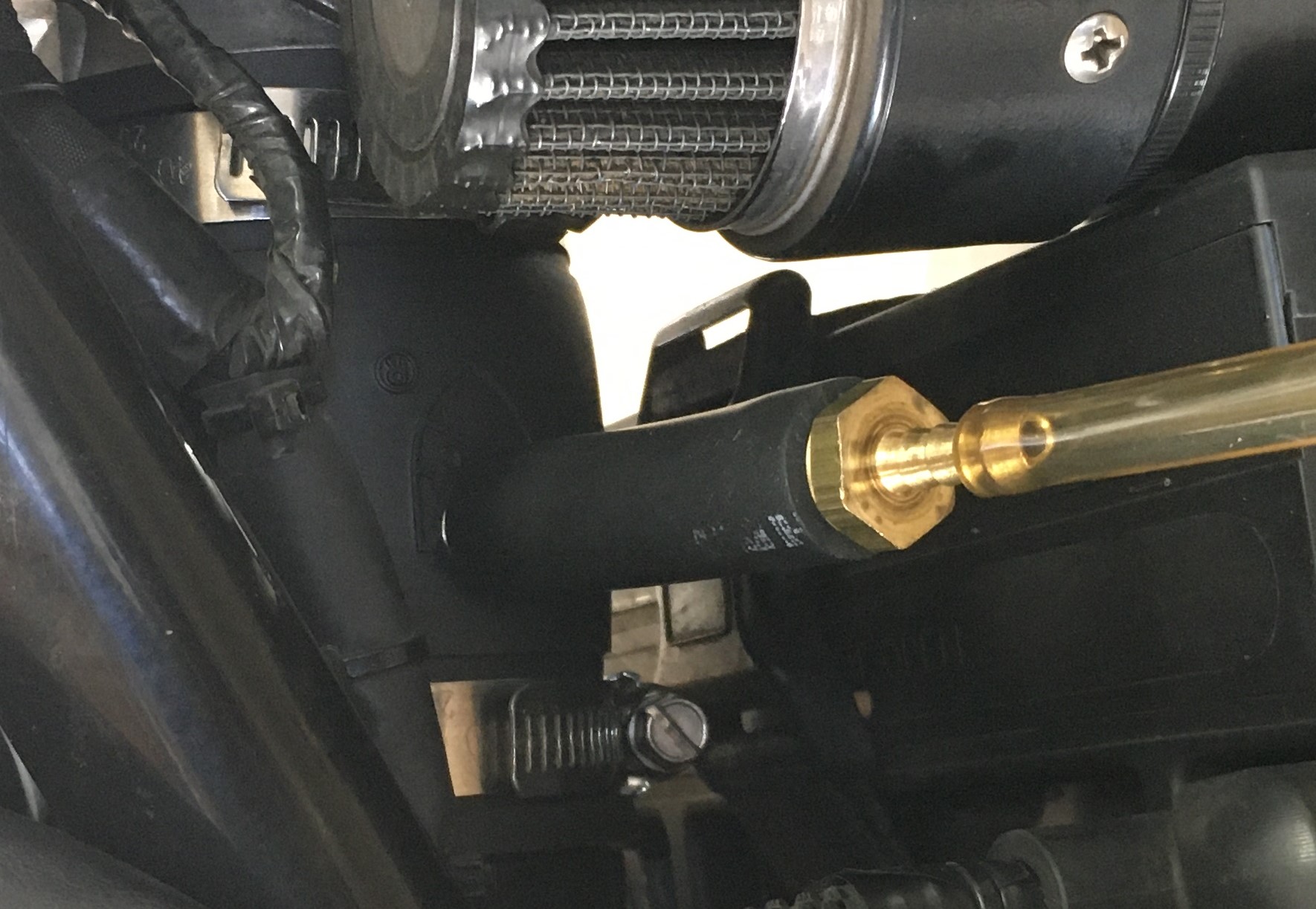 OK, so now I knew that it developed zero vacuum in the induction tract, and the crankcase developed a very small pressure with a breather open to atmosphere.  I installed the Hayden KrankVent.  The KrankVent was installed between the catch can and the head cover.  It’s a simple setup.