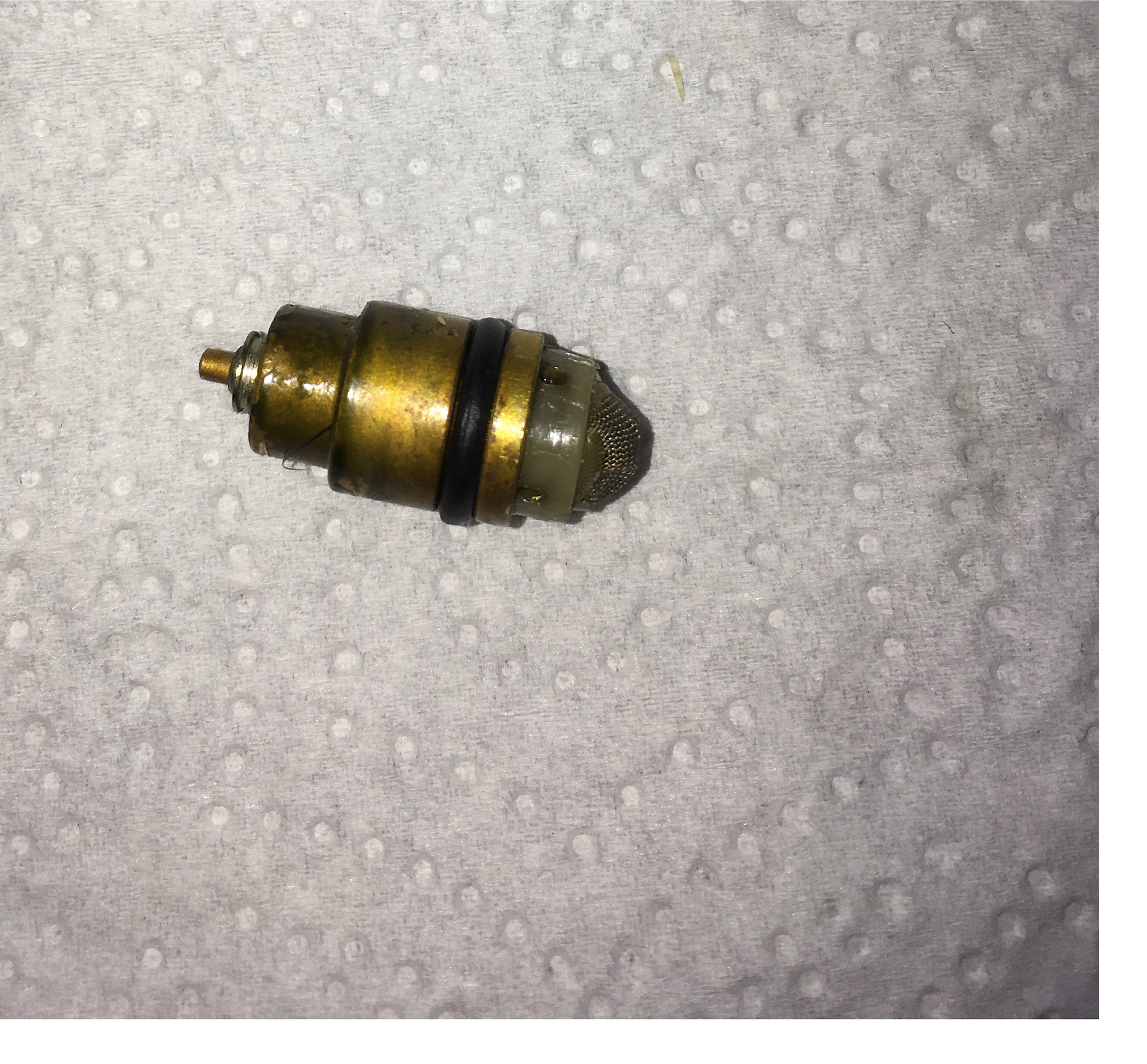 There’s your problem. That rubber piece should be soft, pliable and pointed. Your looks like 3-strikes, so it’s out. Before you reinstall the new float valve, polish the seat with metal cleaner and a q-tip, and also replace the o-ring.