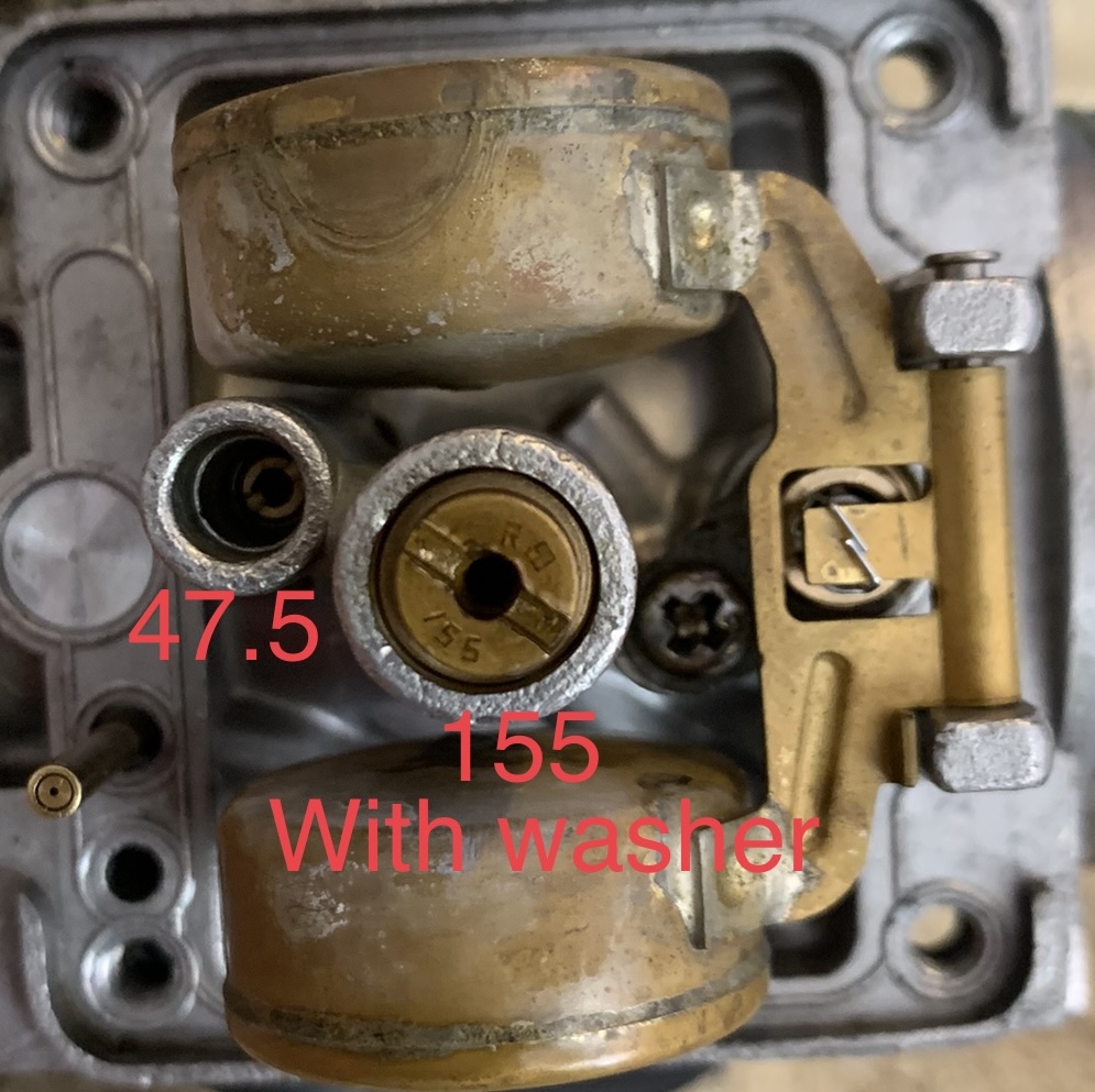 One exception might be the pilot air jet in the top, the one you say has no markings. That's supposed to be a #70. A #70 should be 0.7mm or .028". As luck would have it, a #70 drill bit is .028" (purely a coincidence). You can check the jet by inserting the shank of a #70 drill bit. A #70 bit should just fit, a #69 should not fit, and a #71 should be loose. Your jet looks way bigger than .028" but hard to say for sure. Only way to know is to physically check it.