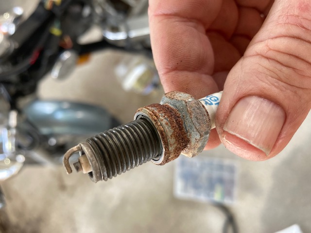 That plug looks almost perfect to me. It's clean with no signs of burning. If our engines were water cooled you might see a bit more color around the perimeter. I'd throw a new one in three and be happy.