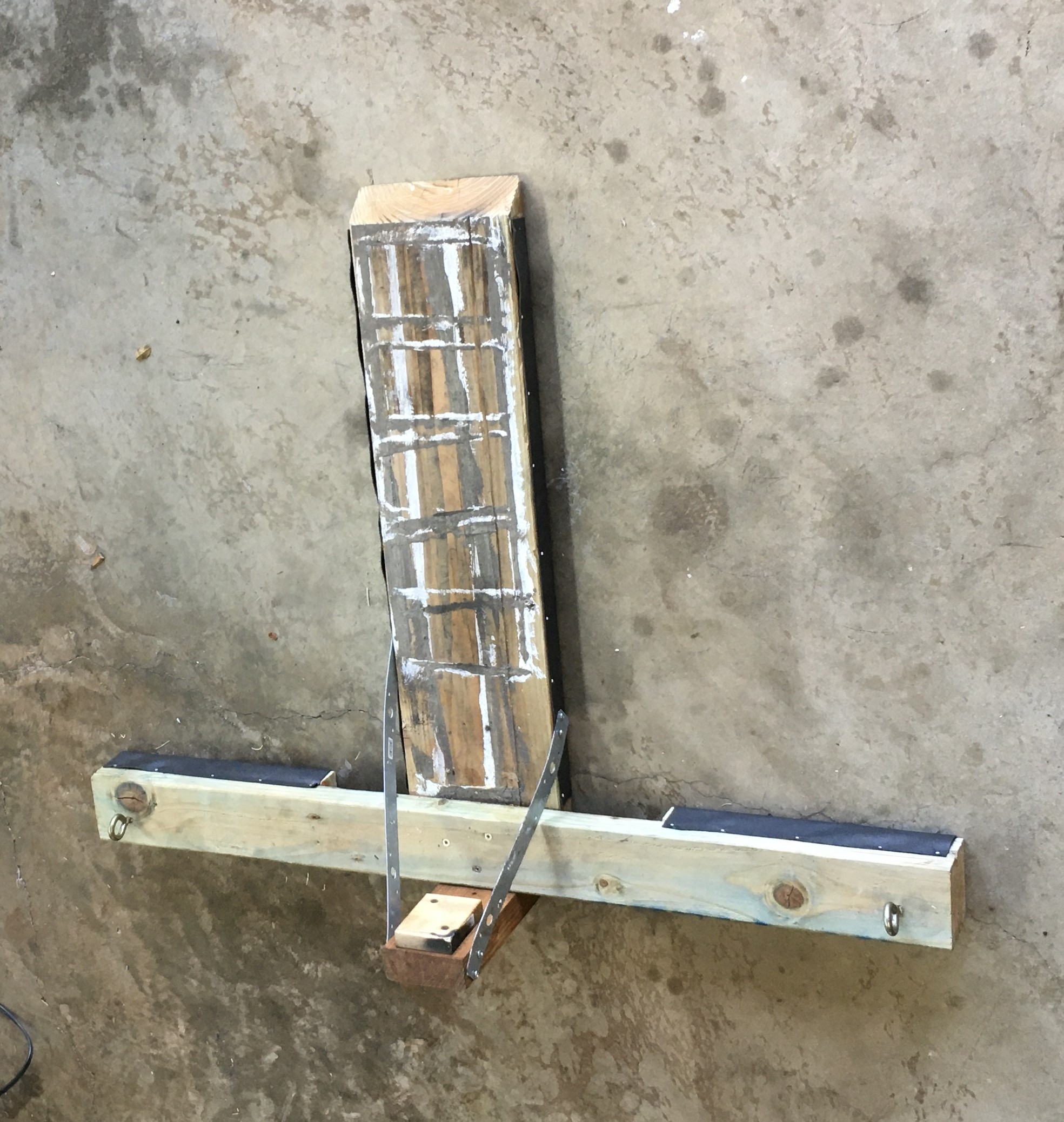 An old chunk of 2 x 6 with a few chunks of 2 x 4.  A couple of old hurricane ties.  A few screws and a little wood glue.  Two eye bolts.  Ready to rock-n-roll.