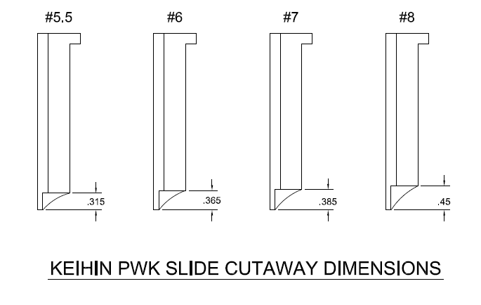 Slides come in various sizes all the way up to #9.0. This sketch provides measurements for #5.5 through #8.0.