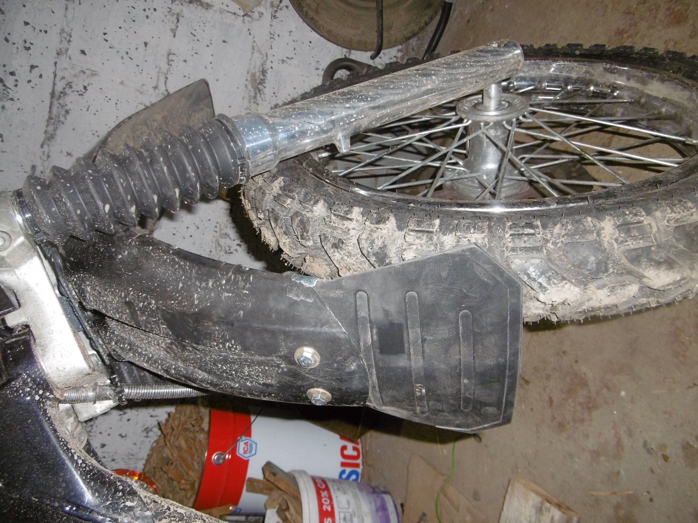 As the dirtbike mudguard did everything apart from guarding from mud and the old steel piece looks kinda silly on the knobby tires, I decided to bolt on a mudflap.