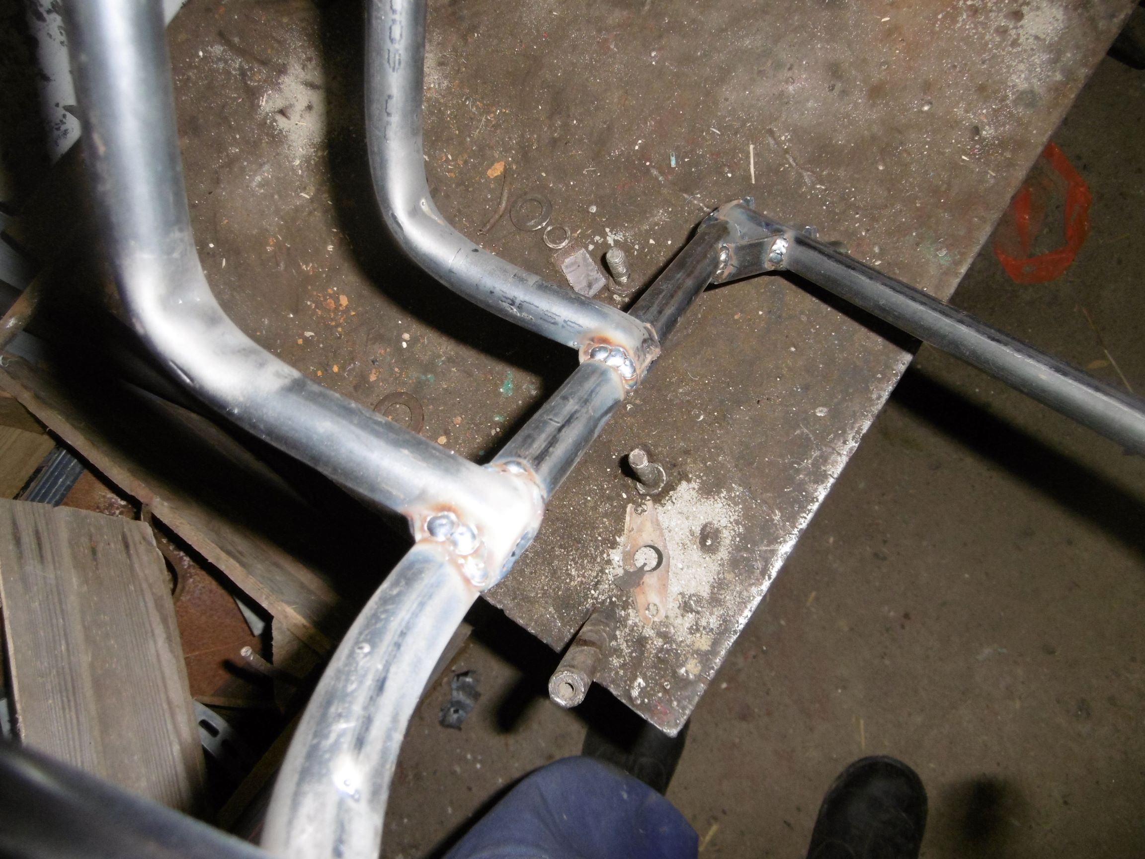 I hammered half a pipe over the horizontal pipe to give it some extra strength