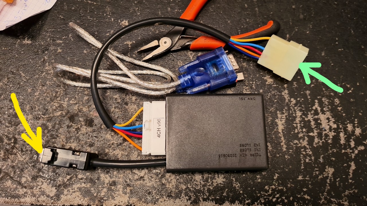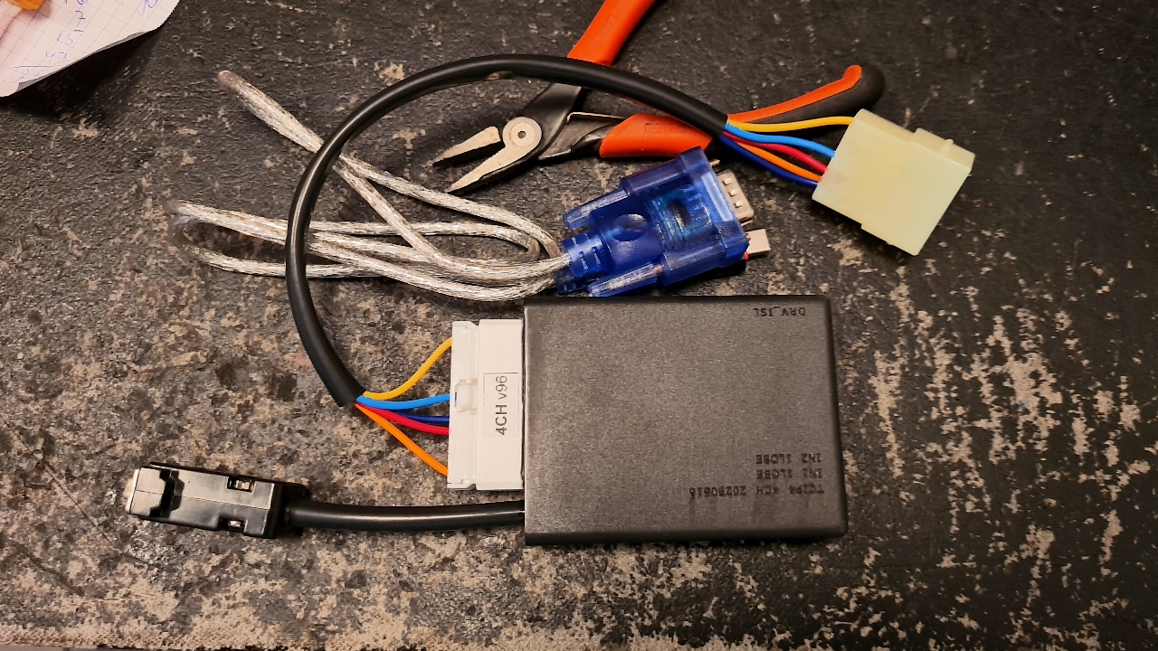 As you see, apart from the connector to the harness, it also has a cable protuding with a serial interface connector. this is used to progran the unit.