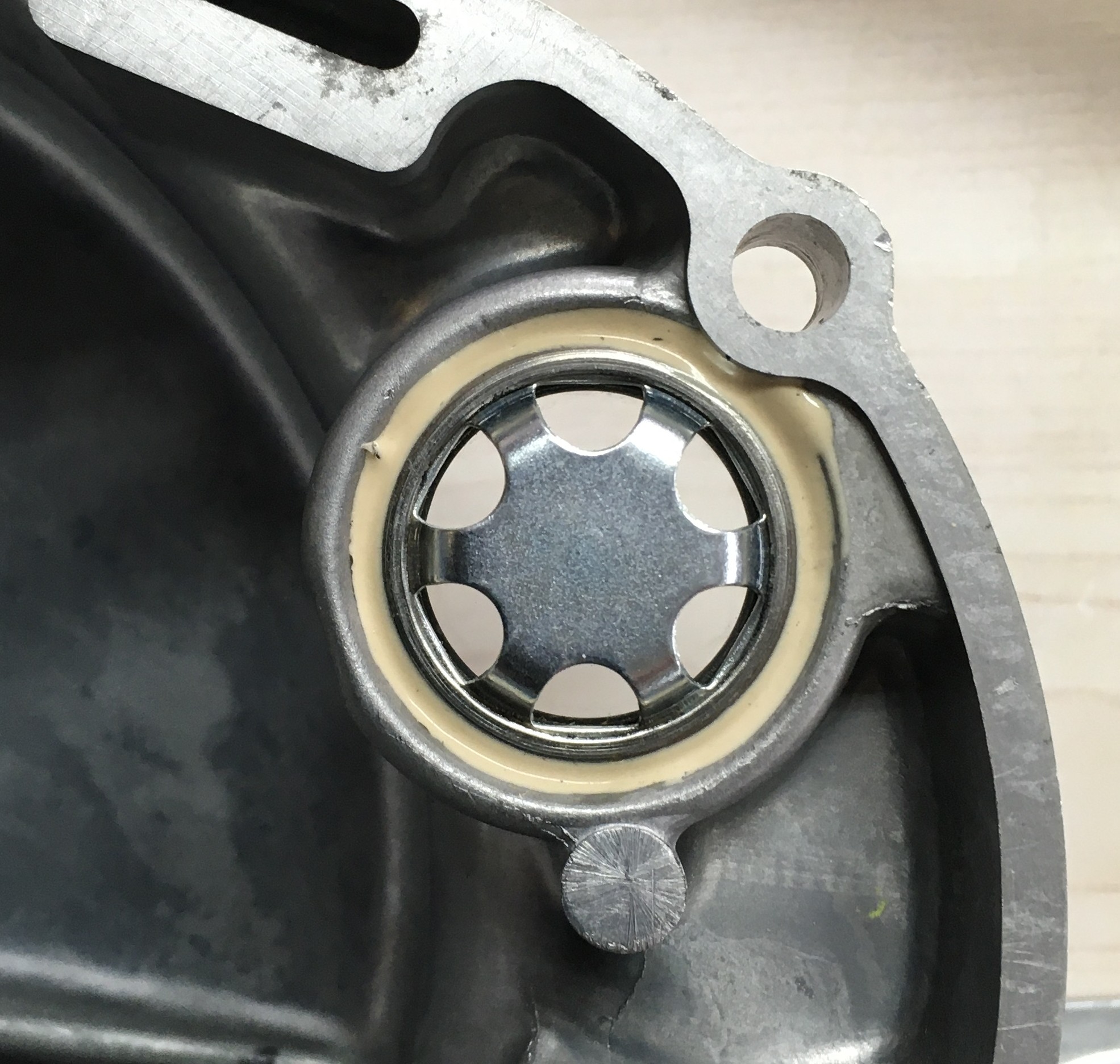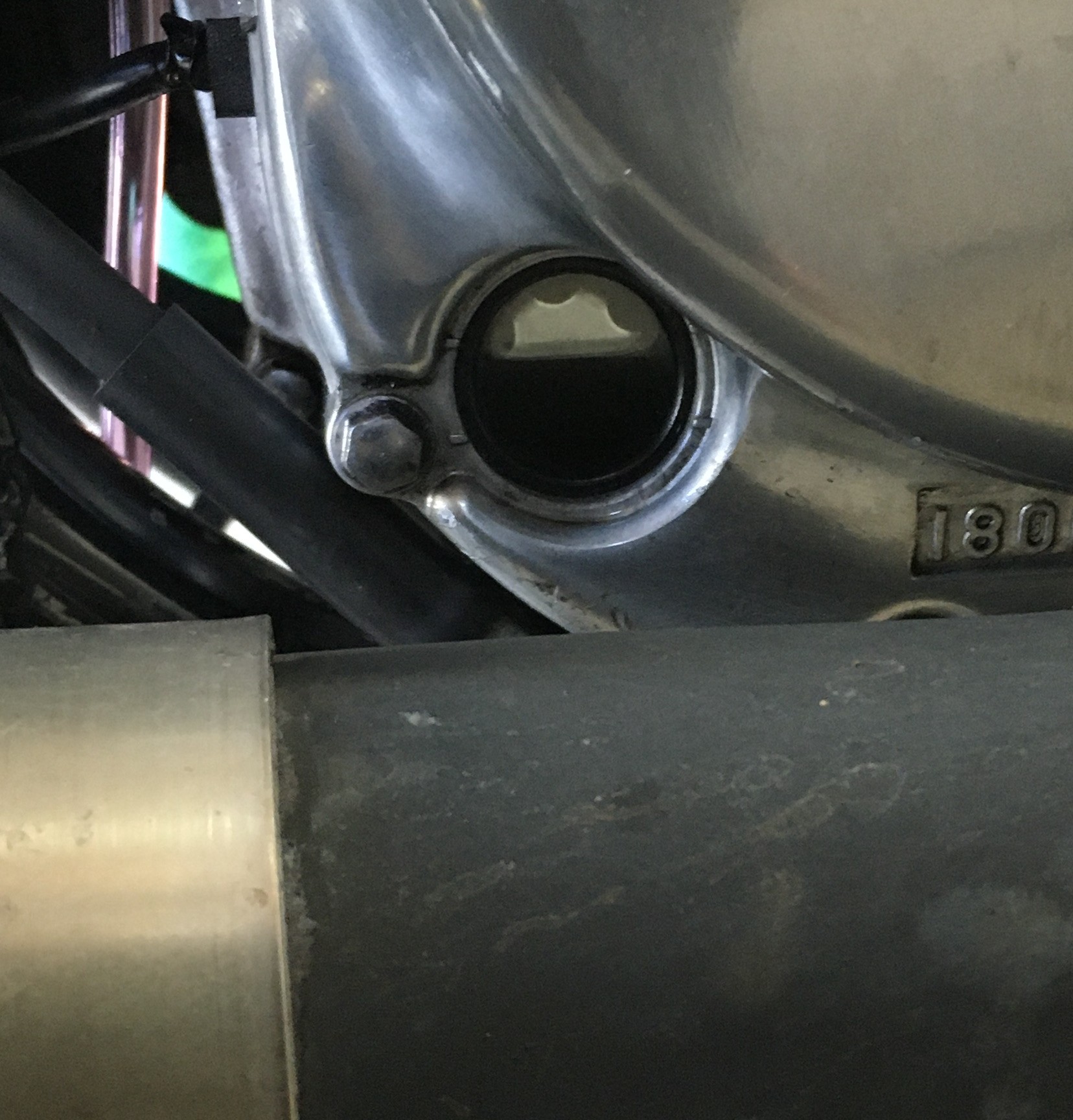 It looks like an 8mm section of the oil level sight glass sealant came dislodged from the seal and is floating in the oil at the sight. It`s still attached to the sight glass seal, it`s just floating there antagonizing me. I am concerned that this piece will break free and become a blockage at an oil passage. I would have to take the clutch case cover off and reinstall the sight glass. Do I do that or take a chance the "floaty" doesn`t ever break free or if it does it gets trapped by the oil filter? While I have the cover off I could check if I need to do anything to my Verslavy timing chain tensioner I put in 2 years ago when I rebuilt the clutch.