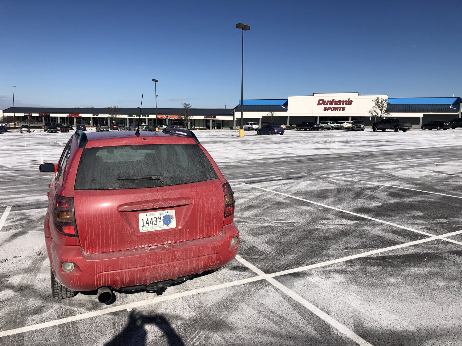 Here is a local parking lot photo from a couple years ago - that white stuff is not snow......it is dried salt!