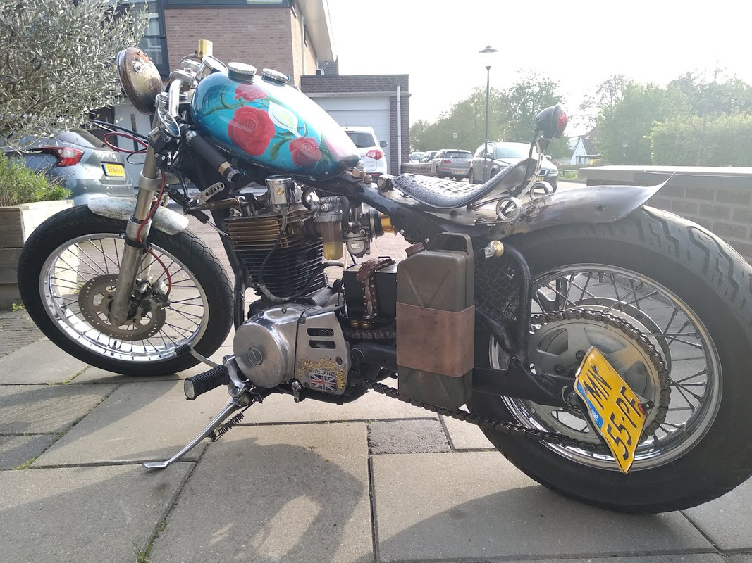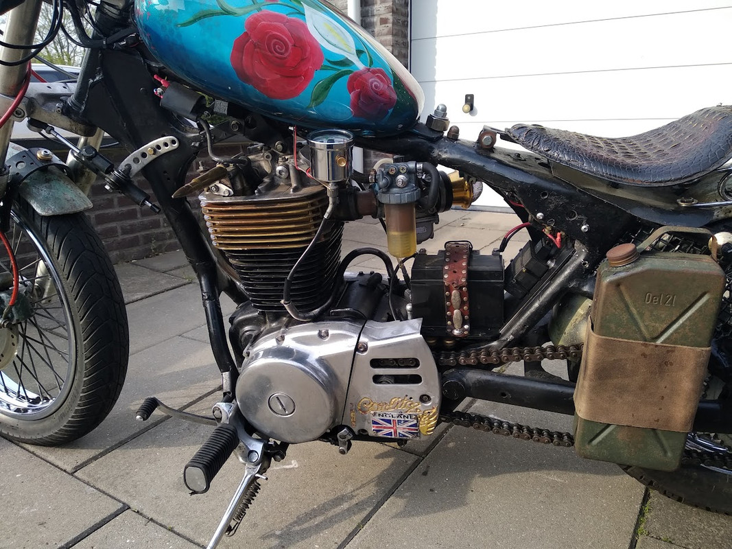 I liked the 50cal decomp lever, the tractor fuel filter and the croc leather seat, the weird tank paint and details on the covers. It just had to be a little different. It was a fun bike to work on!